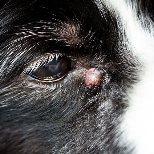 - A visible red or pink mass at the inner corner of the eye.